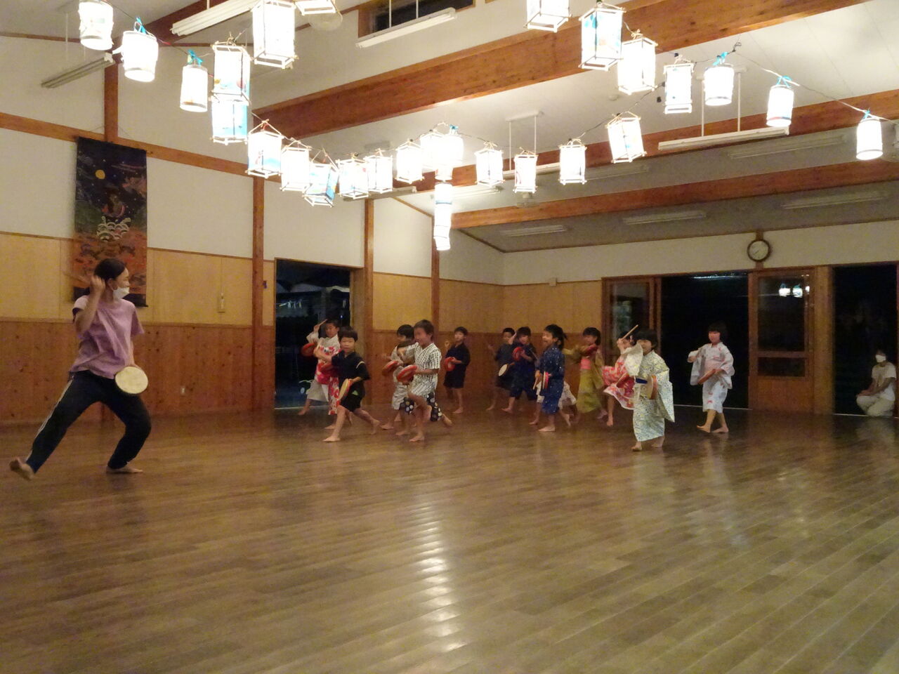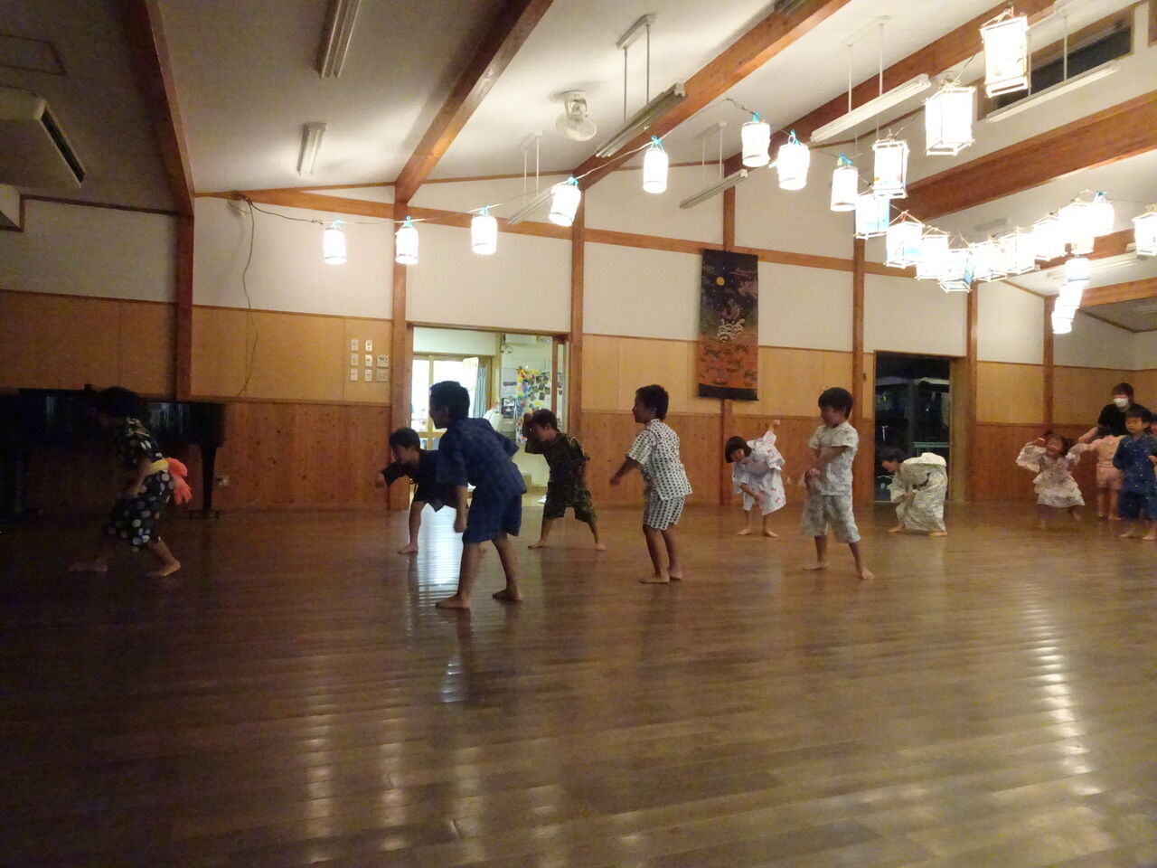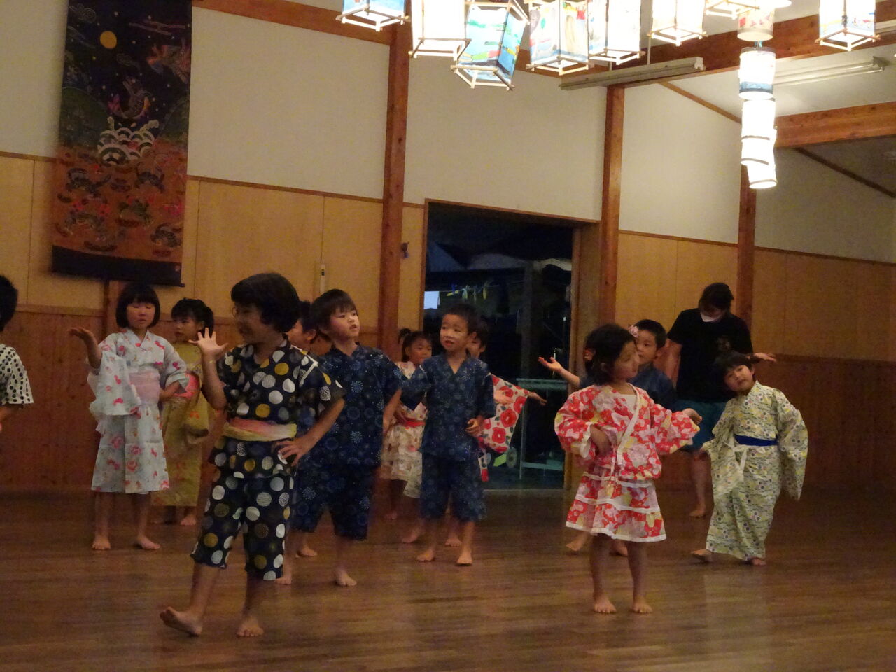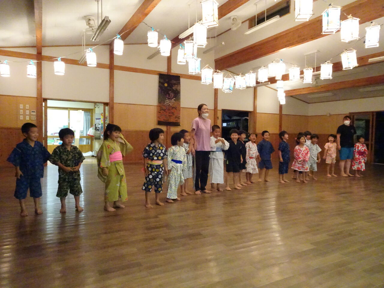 浴衣や甚平を着た子どもたち、はりきり、楽しんで踊っていました。